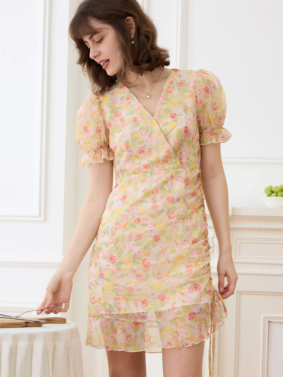 | Detail | French V-neck, modifying the lines of shoulder and neck; high waist design, visually elevating the leg length, shaping the golden proportion of the figure; drawstring ruffle design at the hem, freely adjusting the length of the dress, full of details, delicate and playful; chiffon fabric, light and thin breathable, relaxed and comfortable; lined | |||