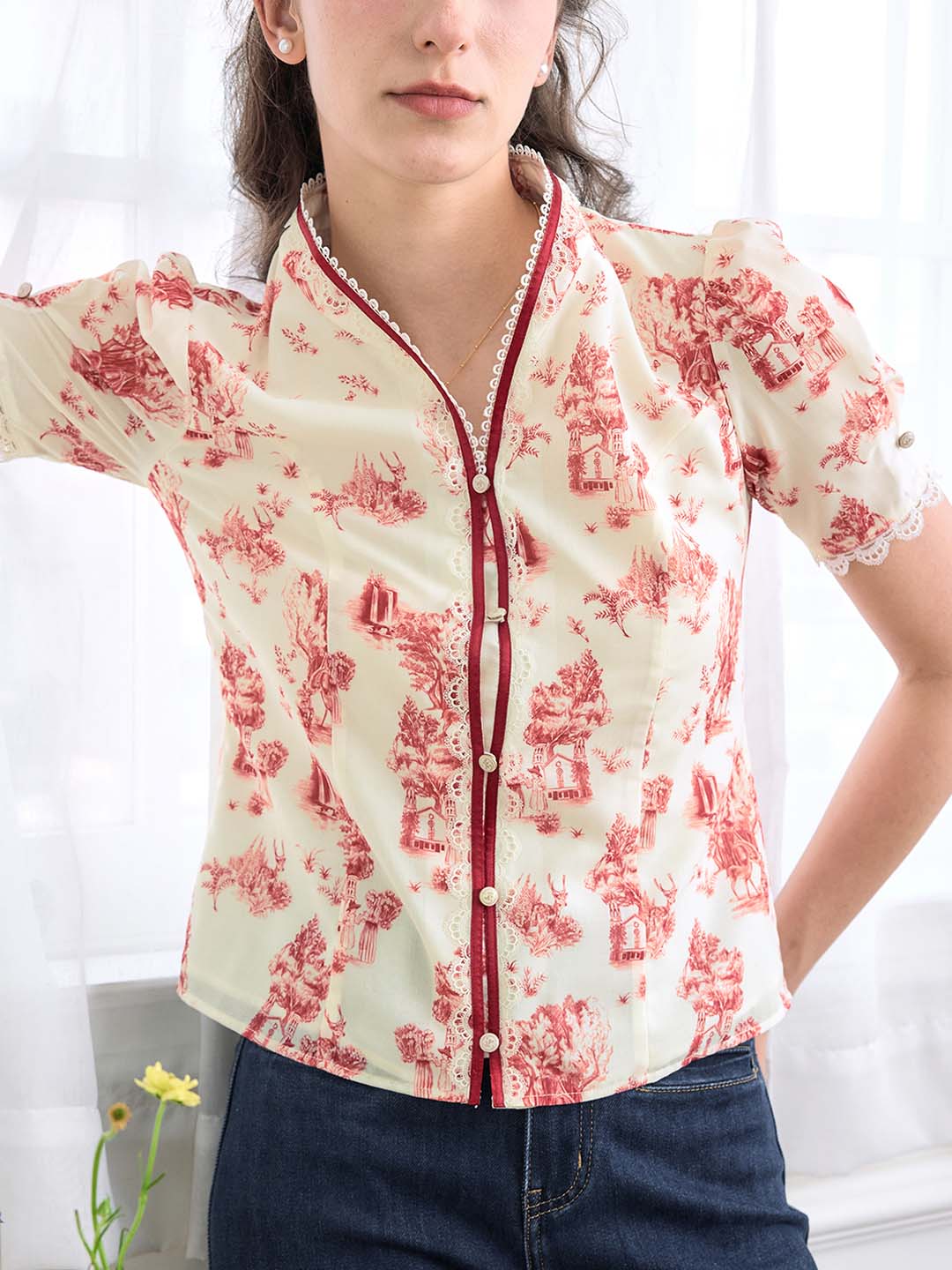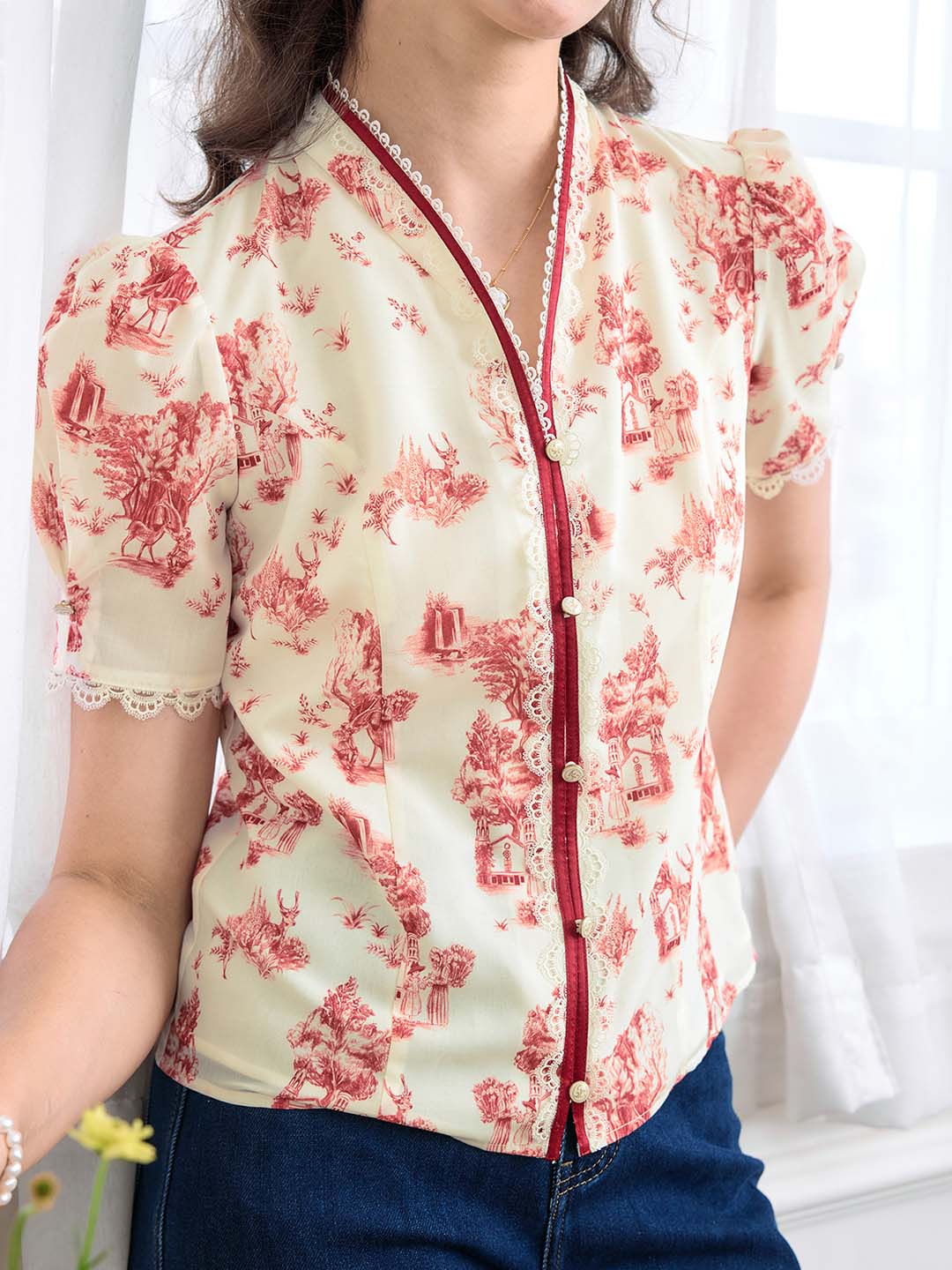 | Detail | Unique stand-up collar, contrasting color lines, full of retro feeling; neckline and cuffs lace stitching, adding romantic details; slim fit, outlines a slender waist; durable fabric, not easy to deform and fluff; lined | |||