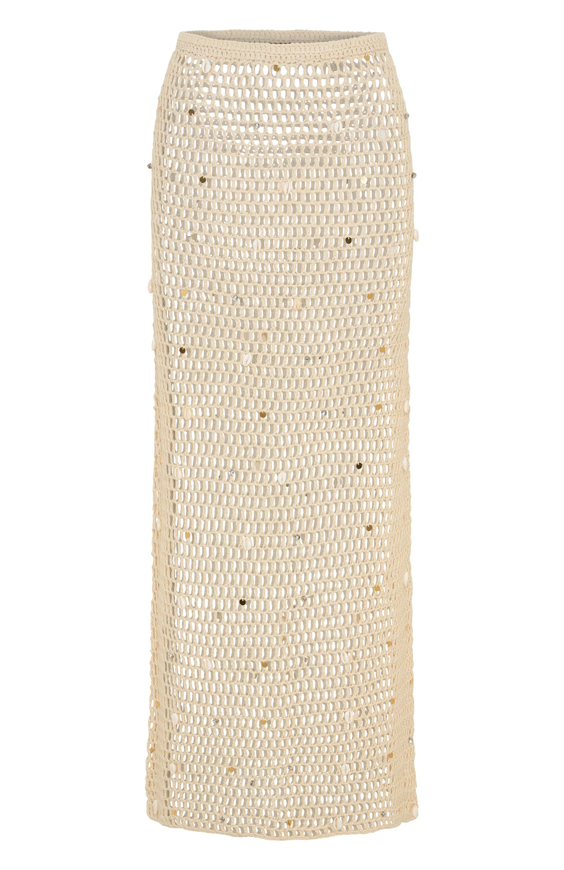 Evaluate your summer wardrobe with the Dance With You Crochet Maxi Skirt in Sand. Features an elasticated waistband, maxi length, and high shine, sheer fabrication with textured shell detailing. To complete the look style with the matching Dance With You Crochet Top in Sand for the ultimate summer fit!
