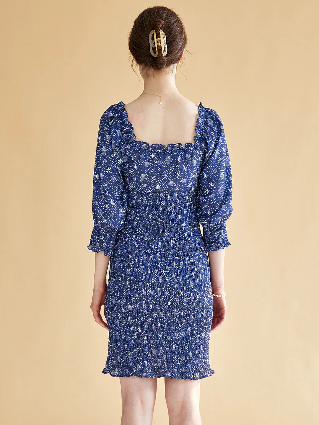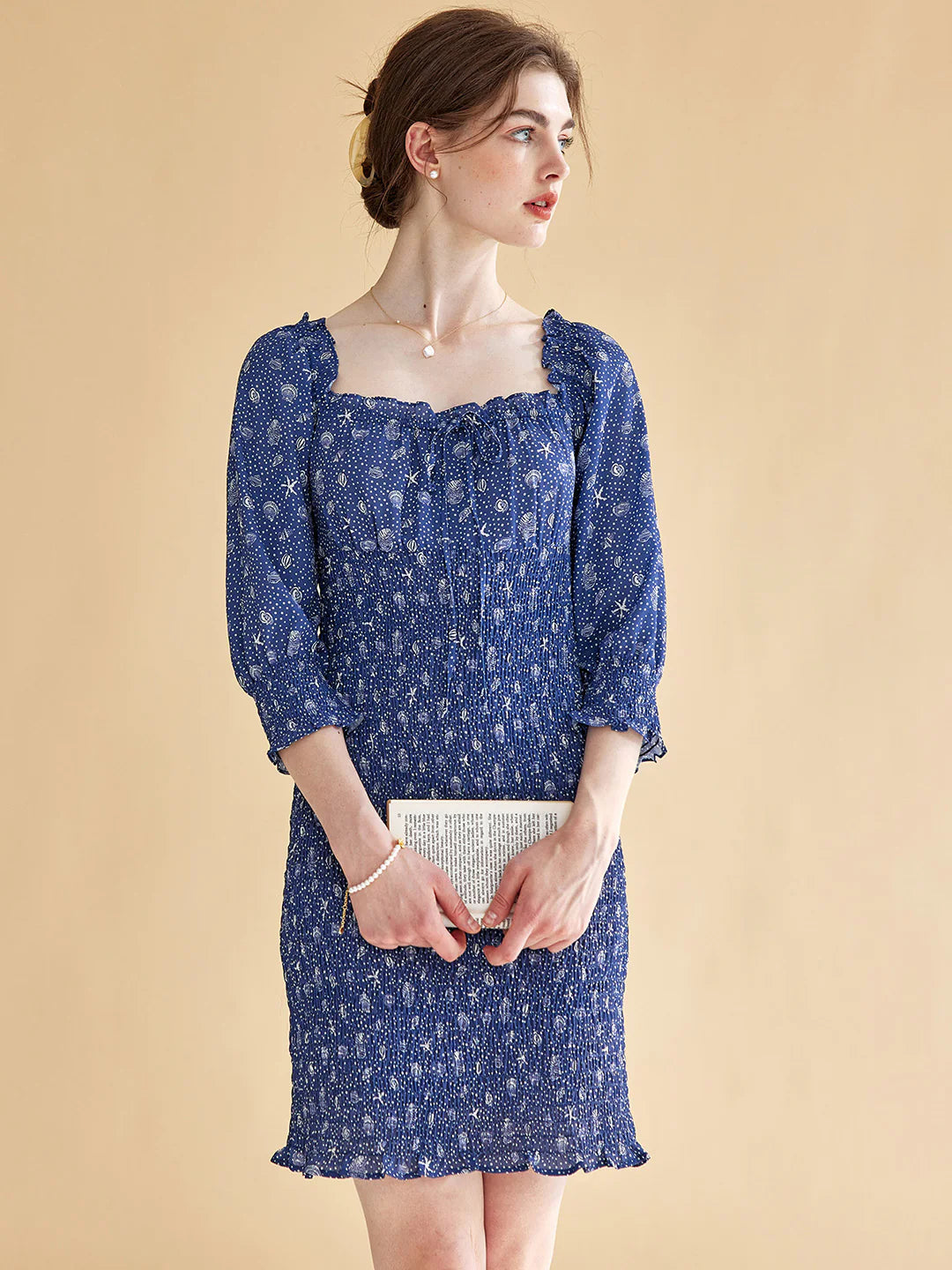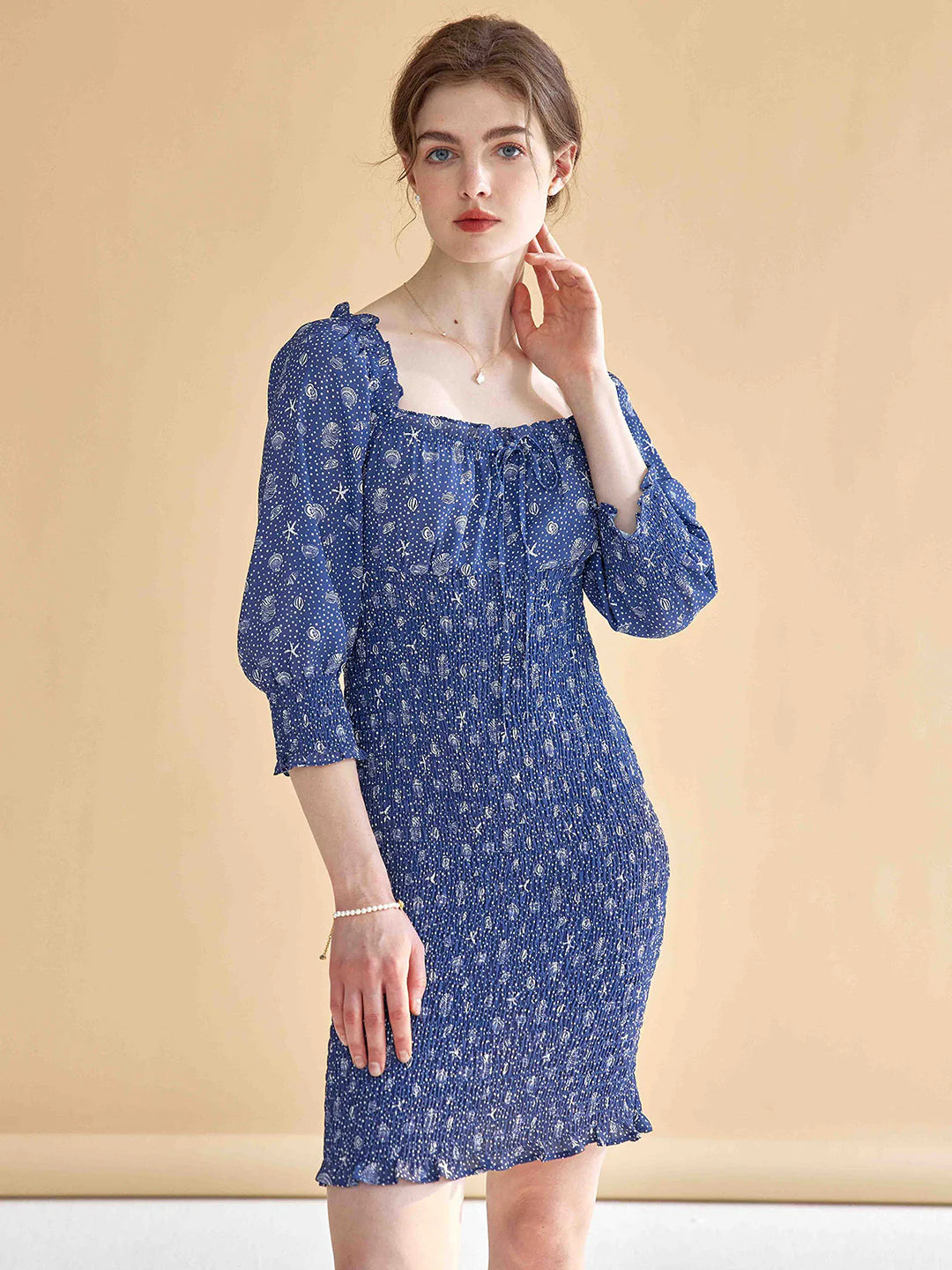 | Detail | Slim fit, outlining slender curves; classic French square collar design with lace edge optimizes the lines of shoulder and neck; loose mid-sleeves with cuffs and lace edge design, modifying arm lines without losing feminine temperament; ruch dress body design, ingenious modify the body shape; the fabric is delicate and soft, comfortable and skin-friendly, comfortable and breathable | |||