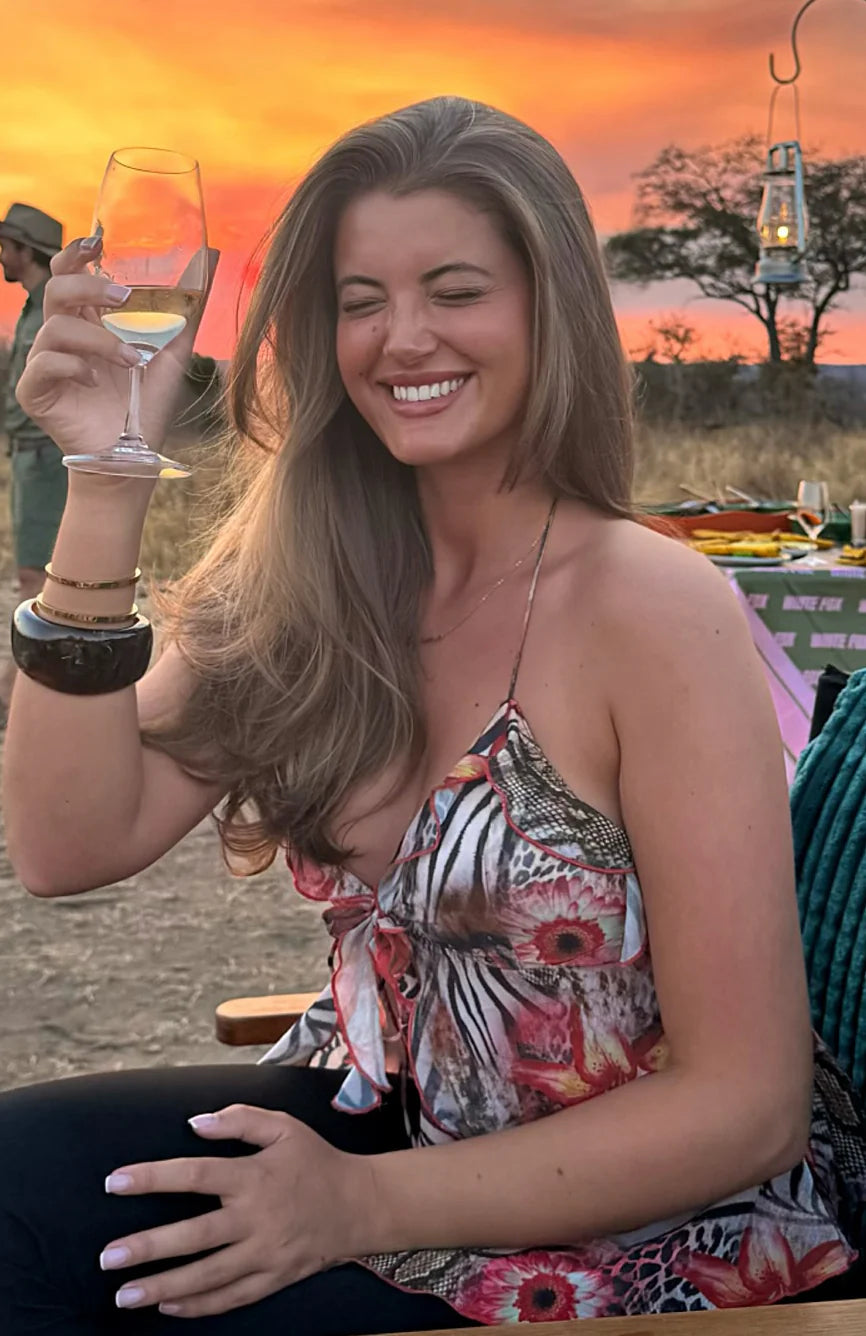 It says it all in the name...Flirty And Thriving Halter Top in Savage Bloom! Features self tie halter straps delicately tied at neck, v-neckline with ruffle detailing, under bust seam for support, self tie strap closing centre front under bust and backless. Pair with mini lace shorts and sandals for a insta worthy fit!