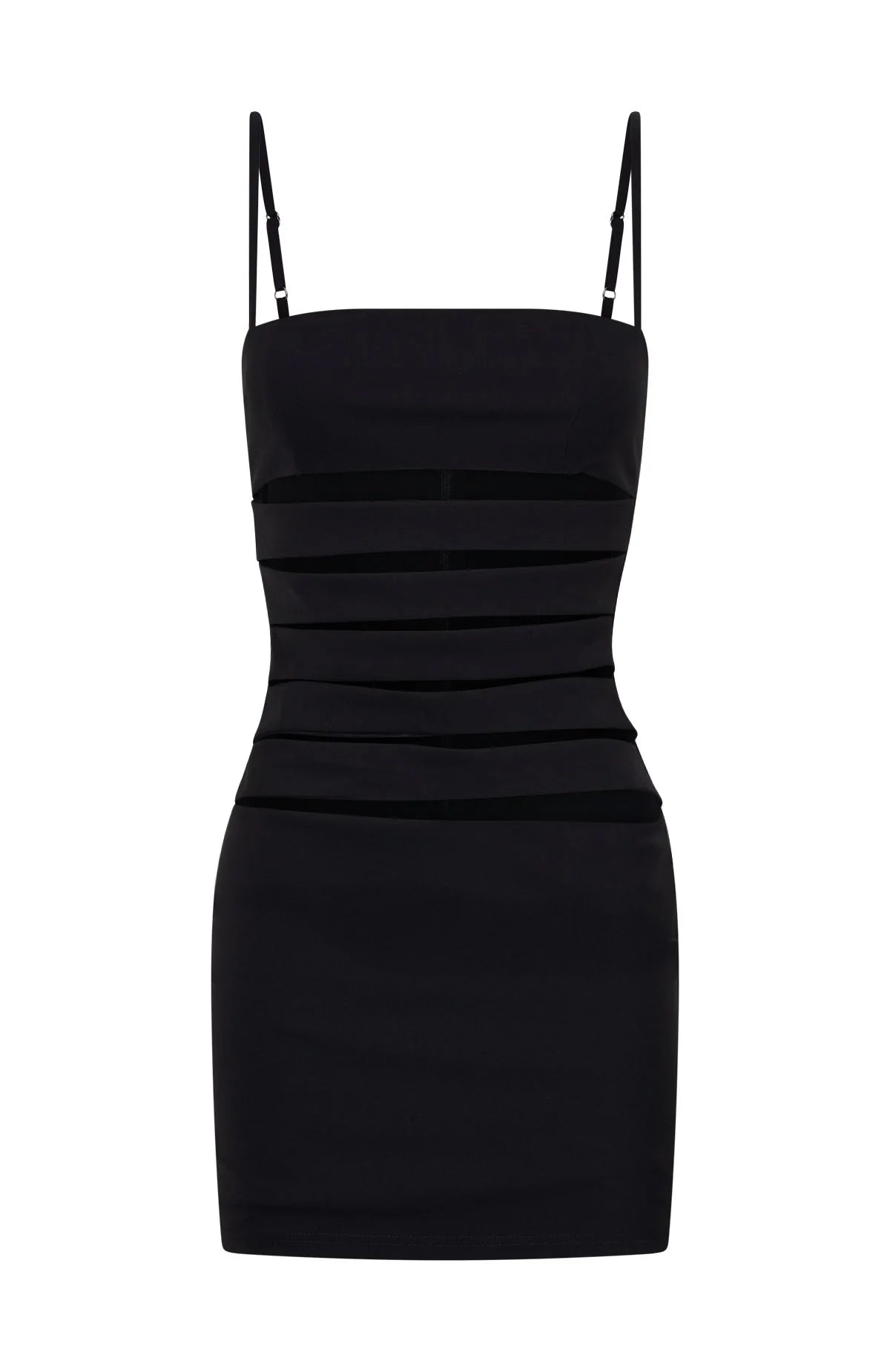 No stylist needed! The He Won’t Hear This Mini Dress in Black features thin adjustable shoulder straps, a square neckline, and cut‑outs down the bodice. With its fitted silhouette, mesh lining, invisible back zipper, and daring mini length, it’s made for standing out. Throw on heels, bold bag and stacked gold pieces...now you’re turning heads.
