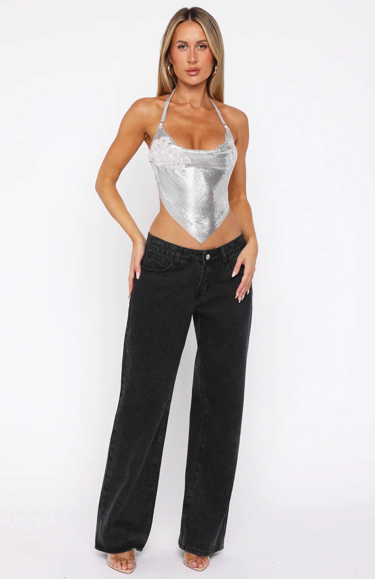 Cheers to the Hidden Glade Halter Metal Mesh Top in Silver! With thin, elasticated halter straps, a soft cowl neckline adorned in floral beading, a cropped silhouette and a daring low-back design with adjustable straps, this unlined chain-mail piece gives major party vibes. Style with sleek heels, minimal jewellery and your go-to jeans to let the top steal the show.