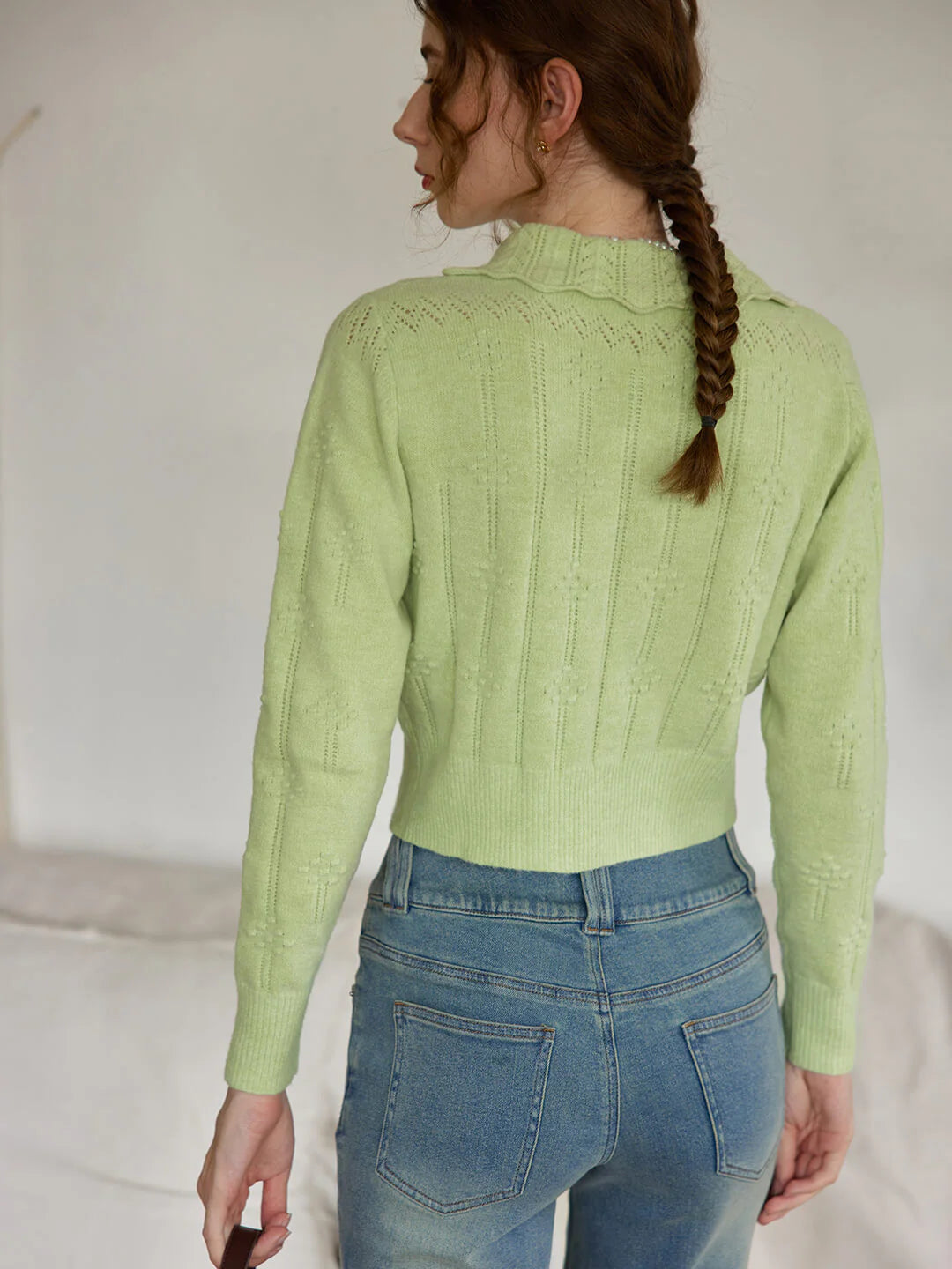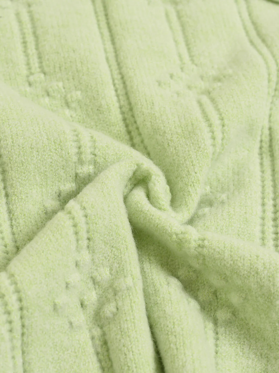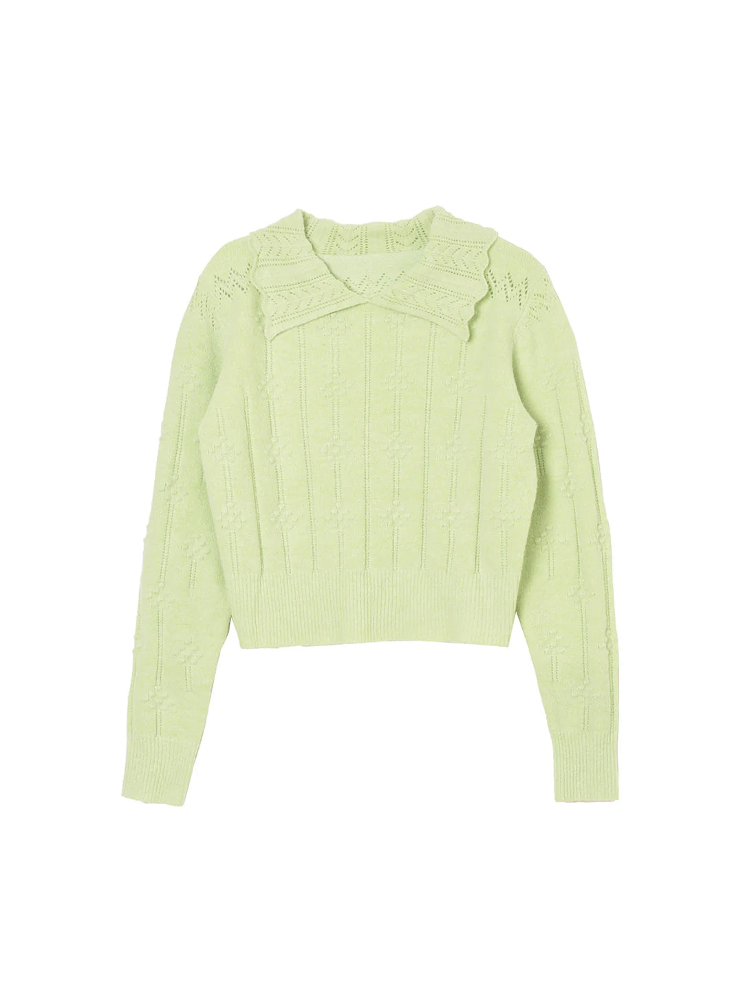 | Detail | Cute wavy collar; 4 different knitting textures | |||