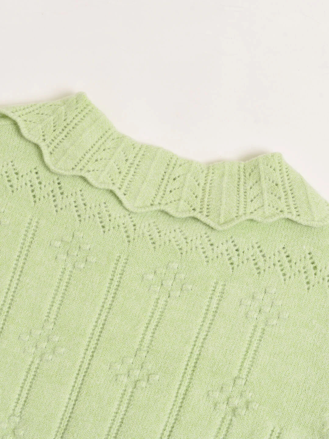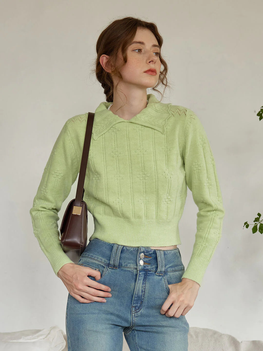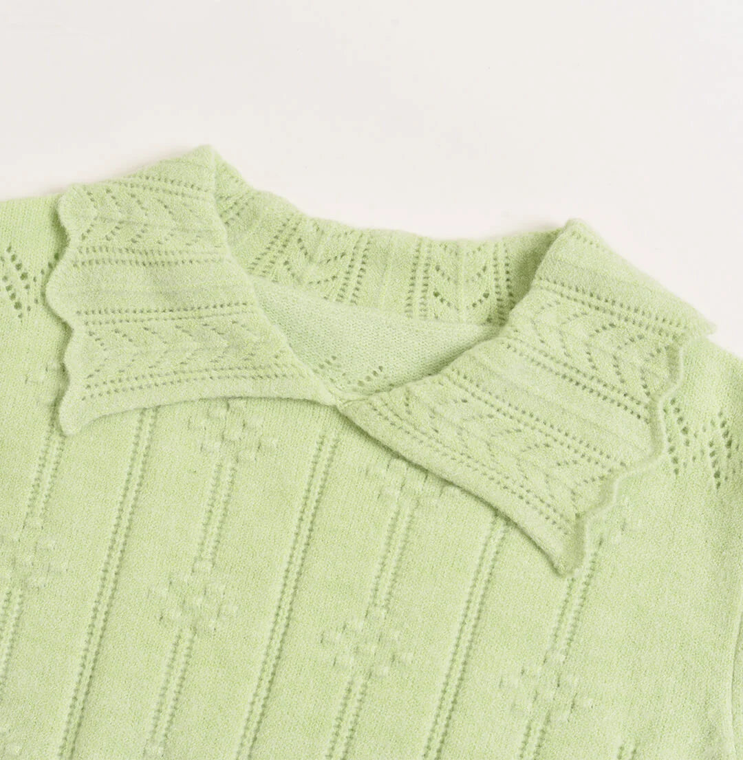 | Detail | Cute wavy collar; 4 different knitting textures | |||