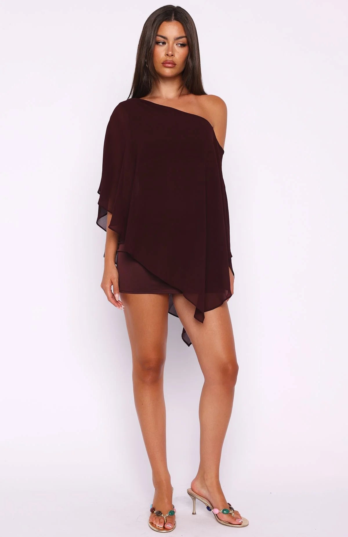 The Just For Tonight One Shoulder Mini Dress Burgundy is your answer to an effortless night out style. Designed with an invisible zipper and clasp closure, a soft, floaty silhouette and a flattering asymmetrical neckline, it drapes over the body while still feeling light and easy to wear. The sheer overlay, flowy fabric adds a touch of drama, making it perfect for dinners, cocktails, or last minute plans that turn into all night moments.