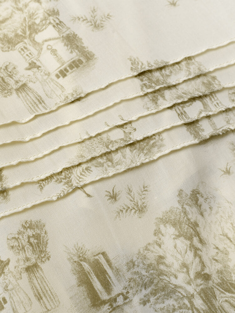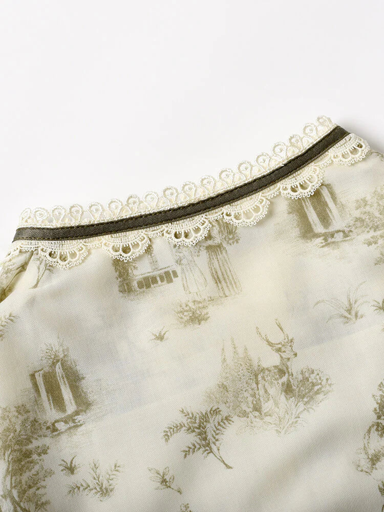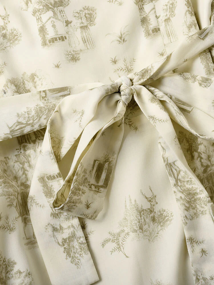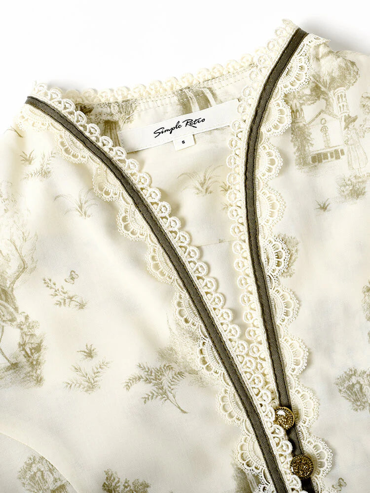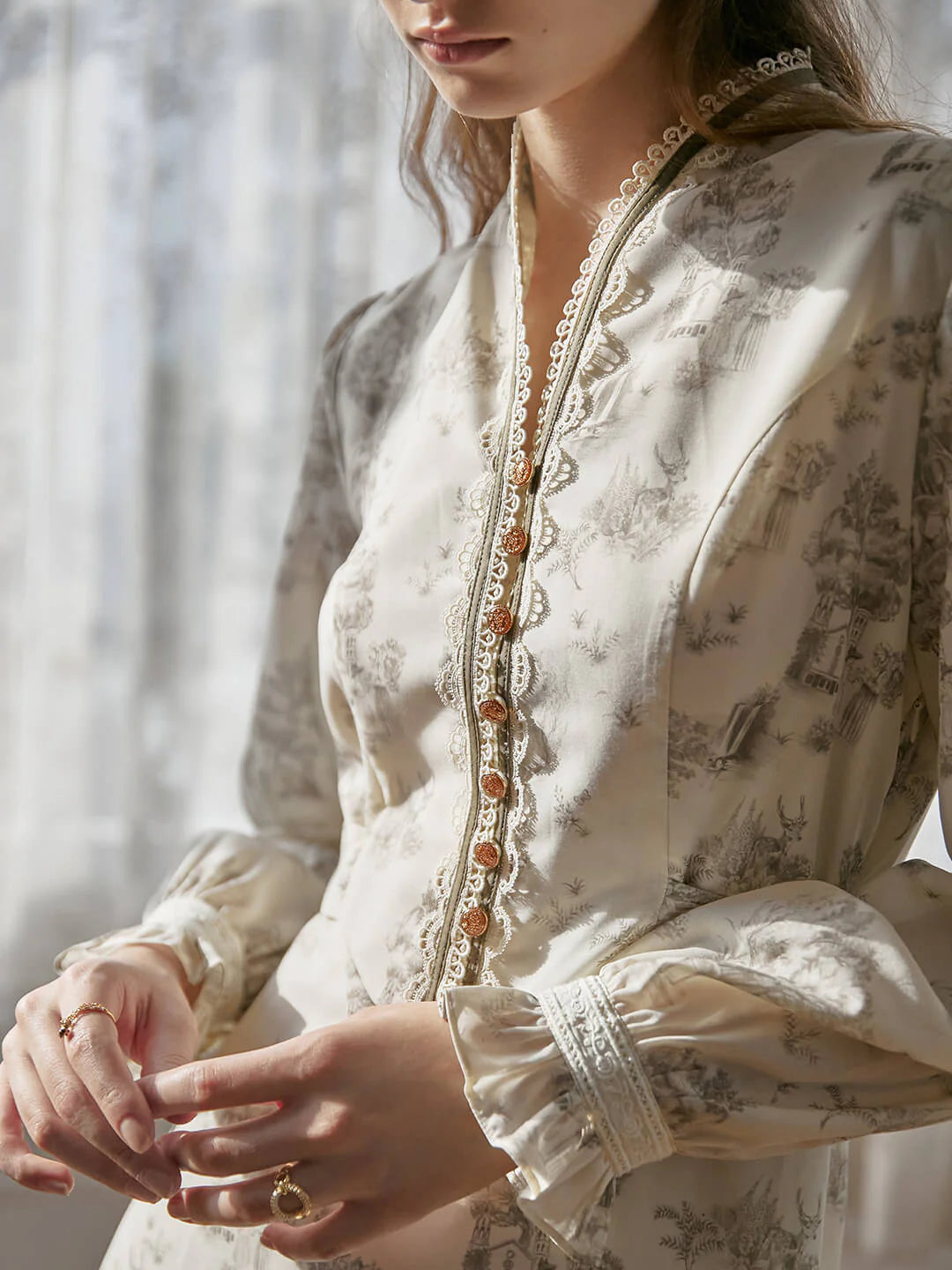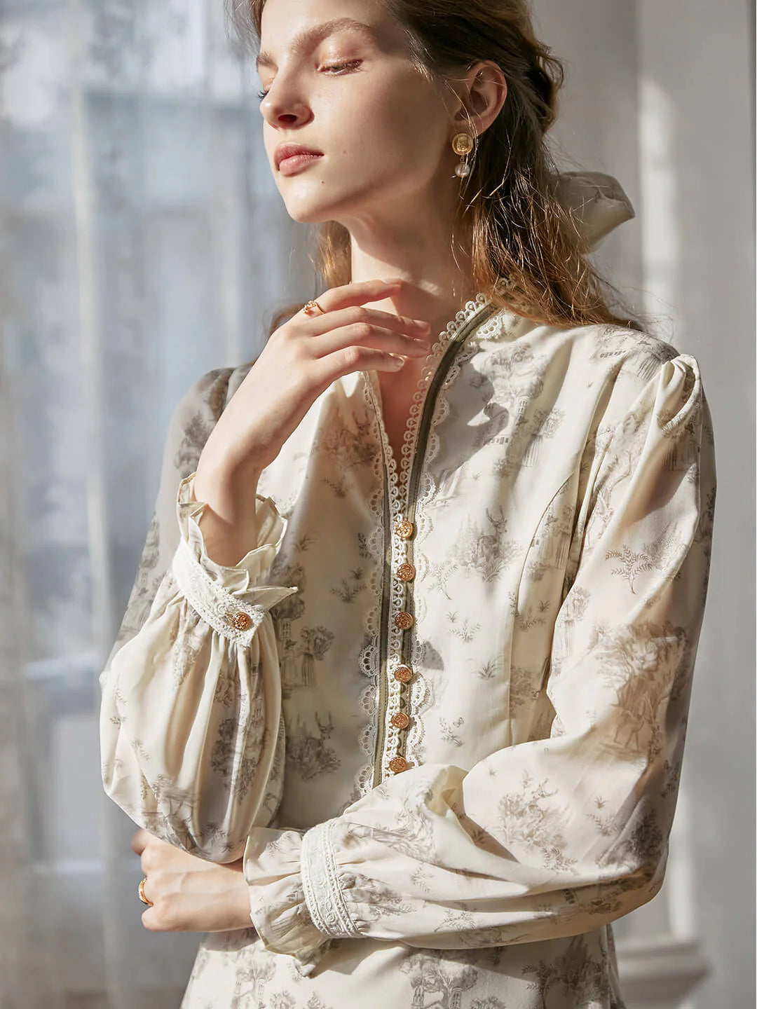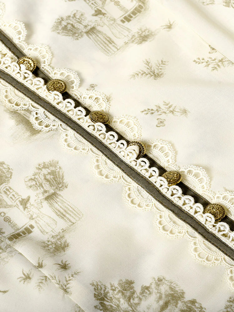 | Detail | Lace Neckline and Placket, Enamel Buttons, Lace-up Waistbelt, Lined | |||