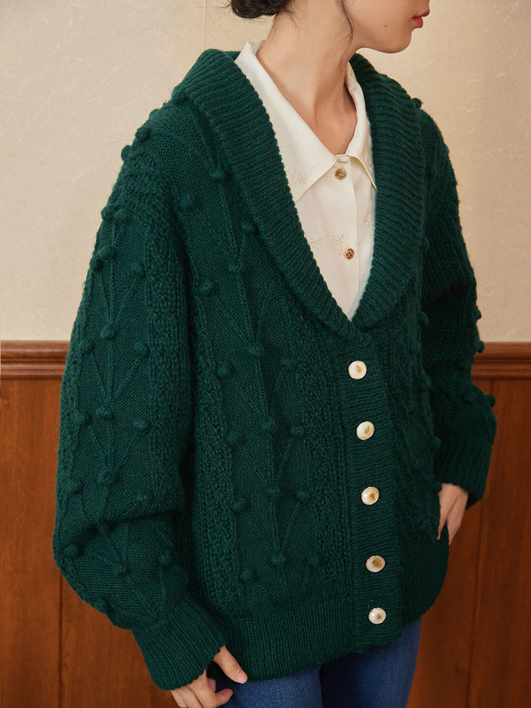 | Detail | Drop Shoulders, Multi-texture Weave |