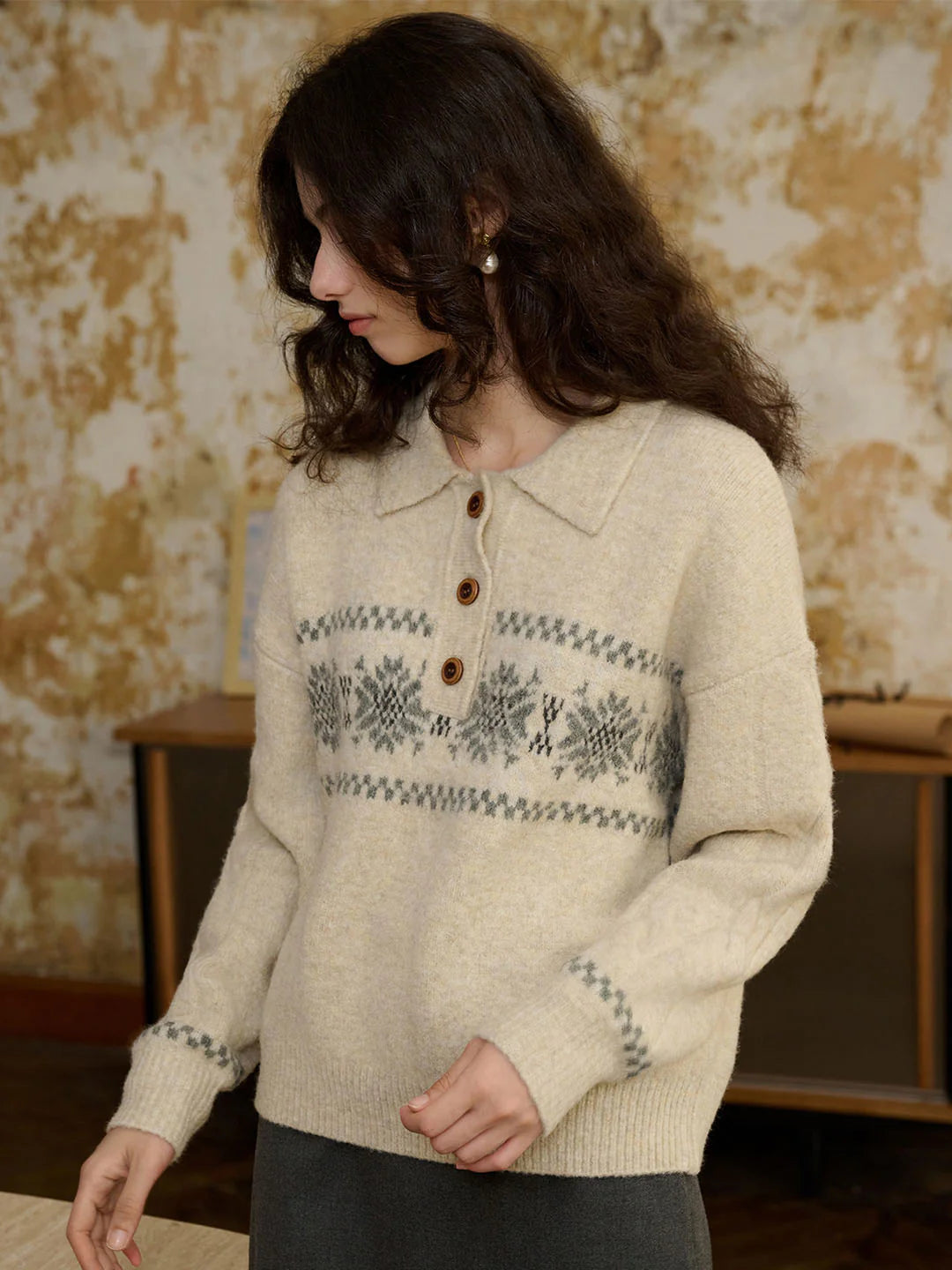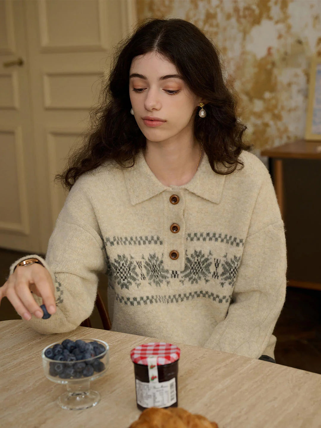 | Detail | Classic polo collar full of college atmosphere, retro details with texture, more convenient to put on and take off; sleeve fixed weave twisted flowers, to create a retro lazy sense of autumn; sense of order Fair Isle pattern, interesting and unique; material warm and breathable, delicate and soft, skin-friendly non-tacky | |||