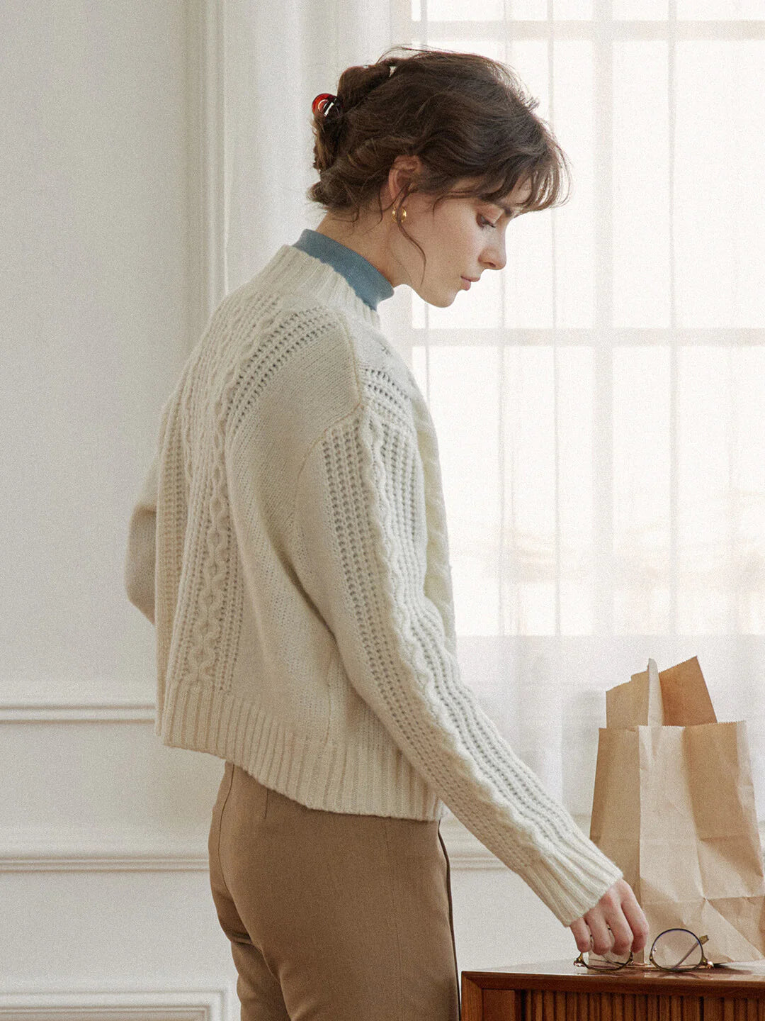 | Detail | Various knitting textures; High neckline | |||