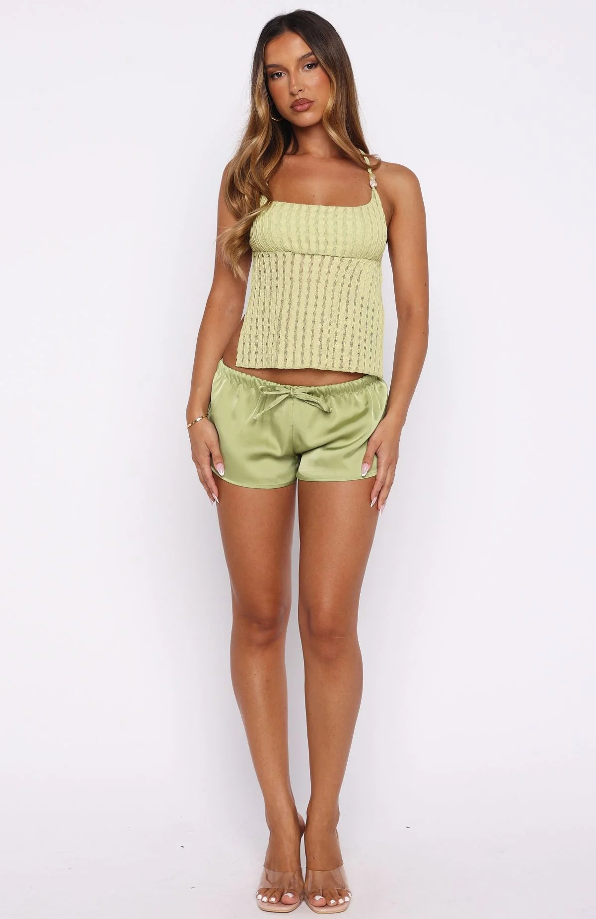 The Spot The Difference Backless Top in Matcha is a chic choice for both midday markets and moonlit dinner dates. This top features criss-cross straps at the back, with beaded detailing at the front and an under-bust seam. The lined bust and sheer bodice create a flattering silhouette, while the backless design adds a touch of allure. Pair with the Chill Squad Shorts and sandals for the perfect blend of chic and chill.