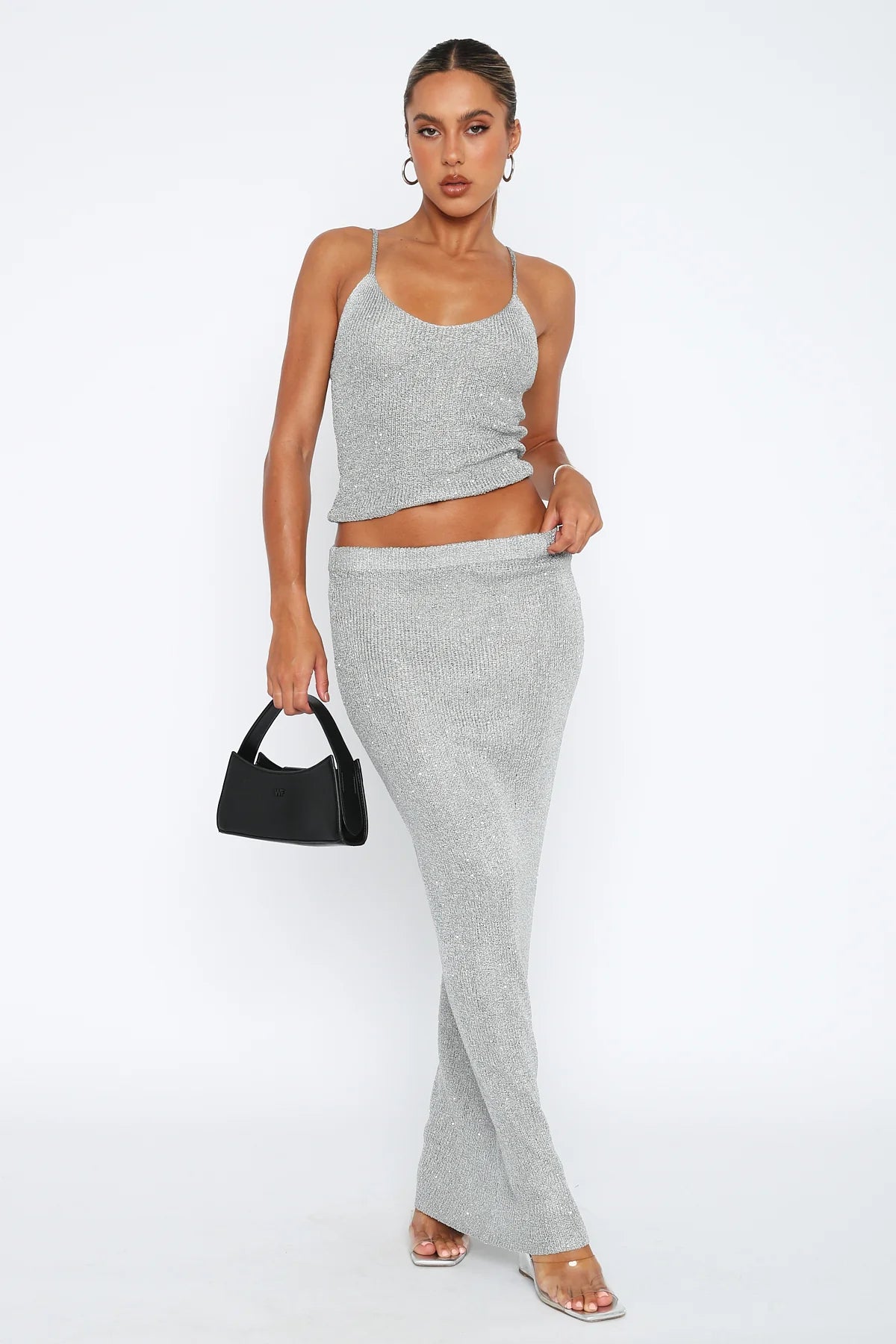 Shine all night long in the Star Shining Sequin Maxi Skirt in Grey. This knitted maxi skirt features a high, elasticated waistband and sequin embellishment. Complete the look with the matching Love Galore Sequin Top and perspex heels for a look that will have heads turning!