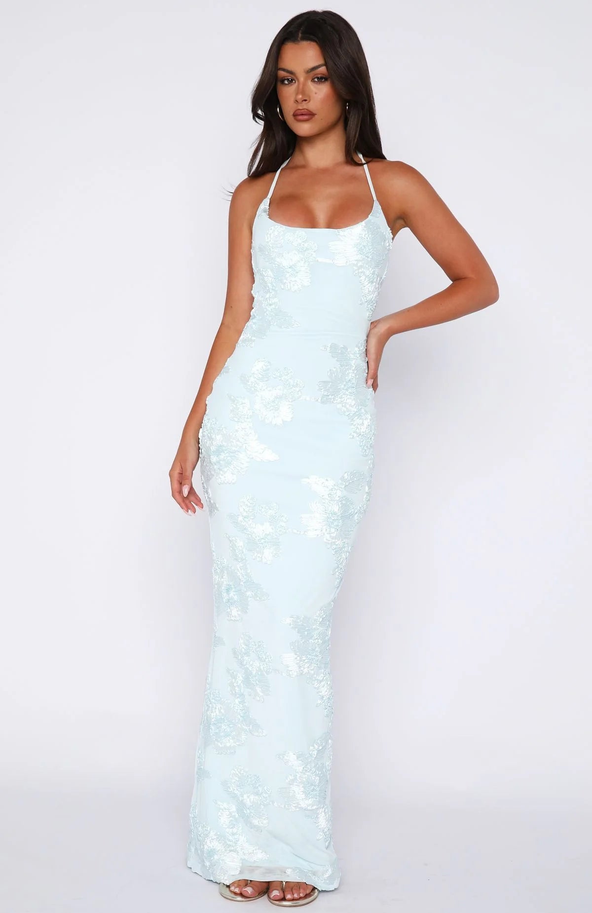 Get ready to wow at your next event with our Summer Ready Maxi Dress in Baby Blue! Featuring a halter neck design with self tie straps, backless, scooped neckline, maxi length, lined, invisible back zipper and clasp closure, and high back split detailing. Style with perspex heels and gold accessories!
