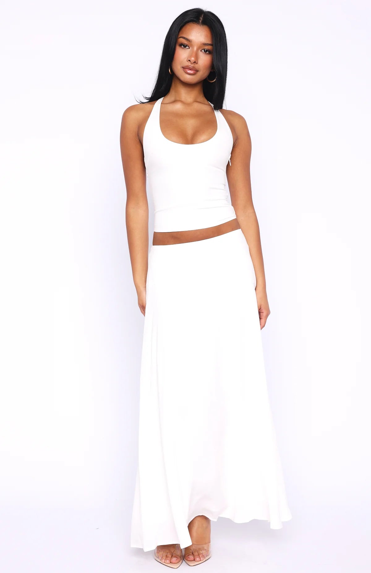 The Sunbliss Maxi Skirt White is made for sunrise-to-sundown styling! Features a structured waistband, a flowing silhouette that sways with every step, a side zipper with secure hook-and-eye closure, and is fully lined for comfortable wear. Style with the matching Sunbliss Halter Top White for the cutest summer look!
