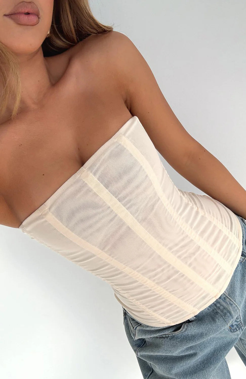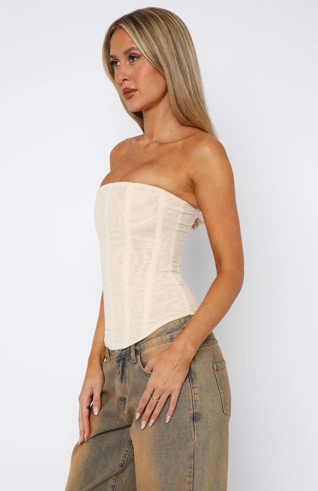 Get ready for the best girls night out with the Tell Me A Secret Strapless Bustier in Cream! Features strapless neckline, boning in bodice, invisible back zipper and clasp closure, full length and mesh lined. Complete the look with a mini skirt, kitten heels and gold accessories for a look we love.