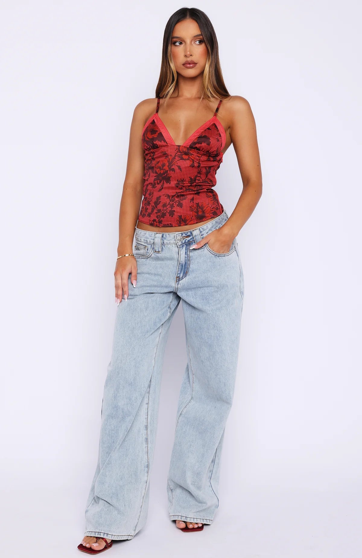 Your love language? Serving looks. The Wild Rose Top Boudoir Botanica features thin, adjustable shoulder straps, low V cut neckline, corsetry inspired lace up back, figure hugging fit, slight stretch material and side zipper and clasp closure. Style with low rise jeans a kitten heel for a look we adore!