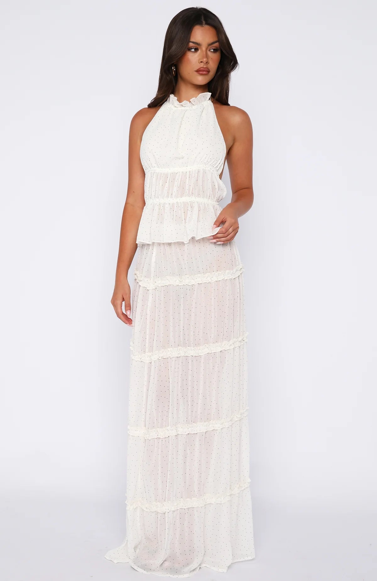 Oceanside adventures call for the Wildflower Days Maxi Skirt in Vanilla Bean. Features a thin elastic waistband, layered panel design with playful ruffle detailing, and lightweight, silky fabric for effortless, unlined comfort. Style with the matching Wildflower Days Top making it a vacation essential set.